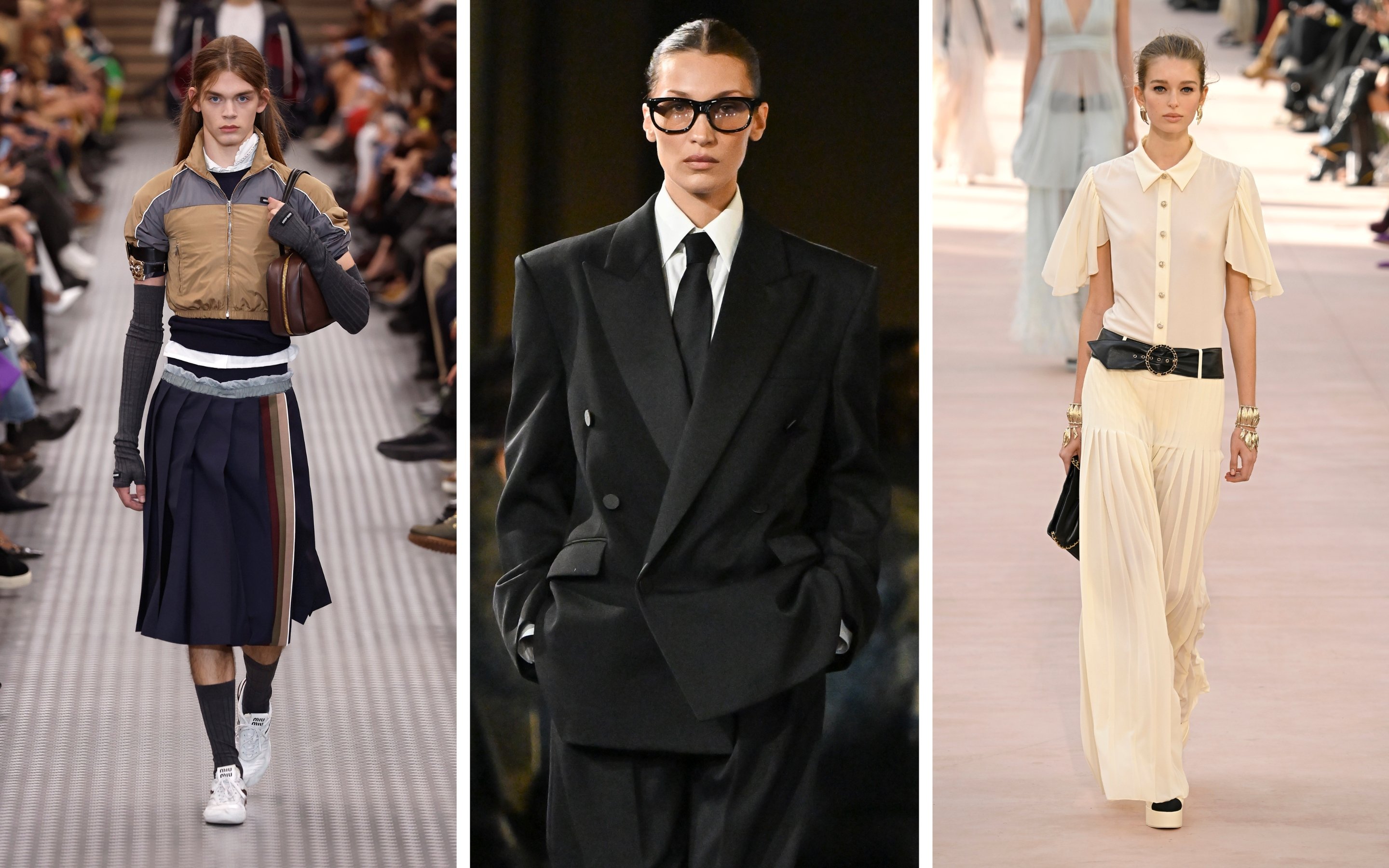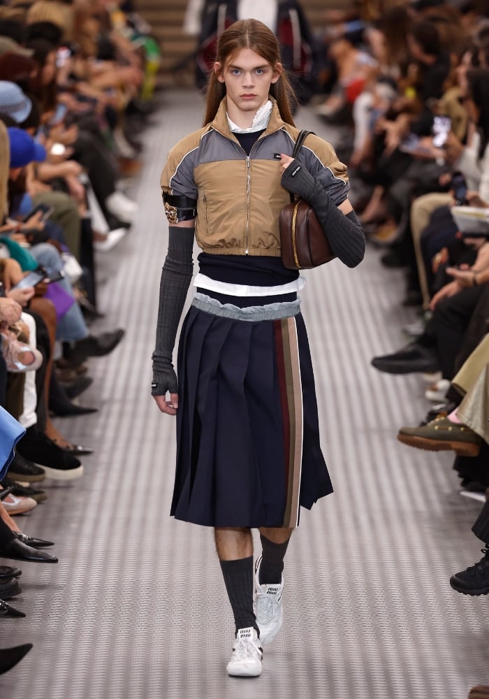 Det er ingen tegn på at designerne er ferdige med å leke med sportswear-universet. Derfor kan du fortsatt trygt investere i poloshirts, tracksuit-jakker og leggings (gjerne med adidas 3-stripes langs beina som en sporty detalj). Det hotteste merket akkurat nå er MiuMiu, og på visningen deres var stemningen også sporty, blant annet med baddrakter som ble stylet med knelange skjørt og lavt midjebelte – en detalj som har blitt lagt merke til hos de italienske motehusene.