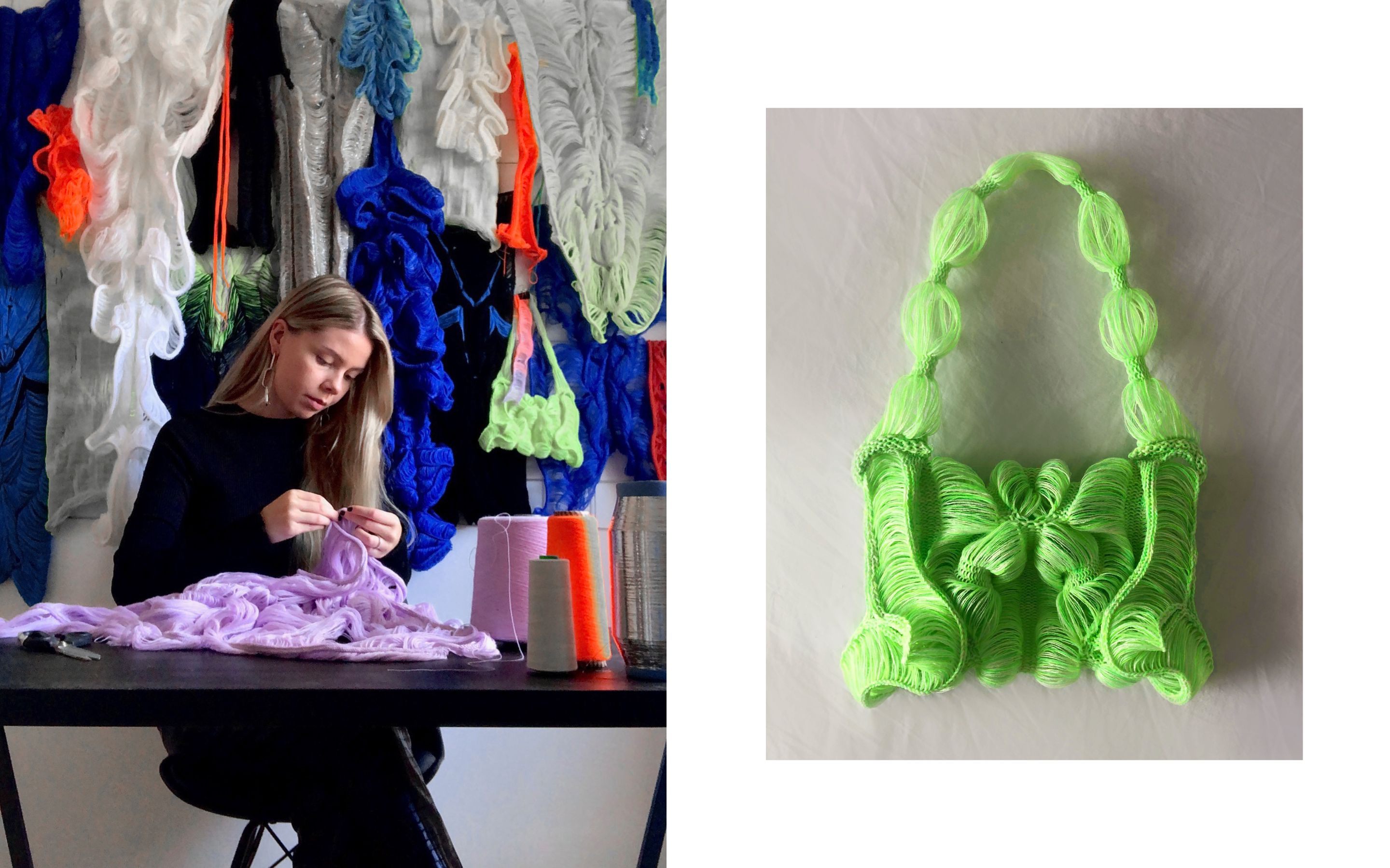 Lige siden svenske Emma Gudmundson var lille, har hun elsket kreative projekter som at male og sy, men hun havde ikke de store planer om at blive designer. Alligevel endte hun på Den Svenske Textilhögskolan, hvor hun faldt for strik, og hun har siden udviklet en helt unik tilgang til håndværket. Med fokus på eksperimenterende strik og bæredygtighed, håndlaver Emma hver eneste item, og hendes sans for detaljer er tydelige at spore i hendes arbejde med konstruktioner og farver.